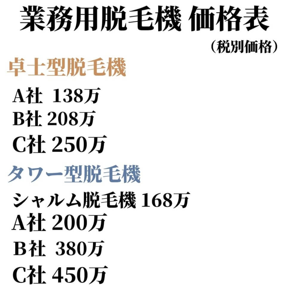 業務用脱毛機 購入価格は 必要な費用