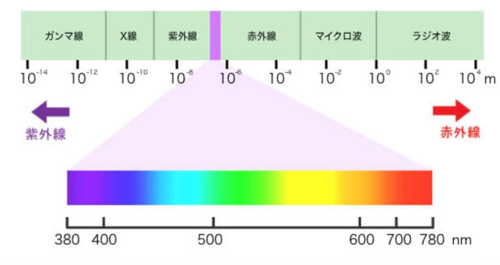 - 紫:約380~450ナノメートル