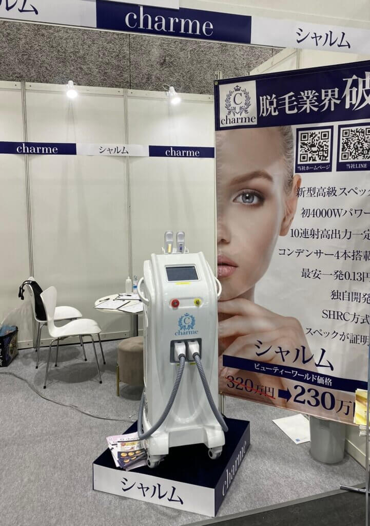 シャルム業務用脱毛機はハイスペックになり、2020年ビューティーワードウエストから発表された業界TOPの業務用脱毛機です。今迄の脱毛機にはなかった!ユーザーが求めていた脱毛機!と言う観点を即、受け止め、開発されました。今までの脱毛機のデメリットは、冷却温度が保てない!ランニングコストが高い!効果が出にくい!販売価格とスペックが伴っていない!上げさせて頂いたのは、ほんの一部ですが、一文を枝葉にしていくと細かな点が多く出てきます。ユーザーにとっては、とても重要な事です。シャルム開発チームは、一心に全てを取り込むと事を決意し、シャルムが誕生しました。